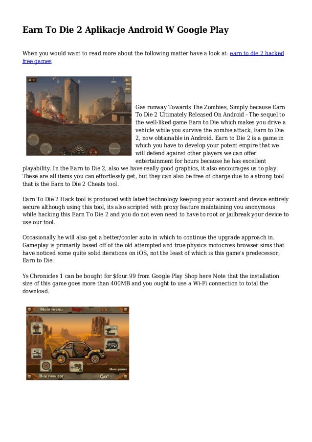 Unlock and upgrade vehicles as you drive your way through countless zombie hordes. Earn to die 2012 part 2 is interesting hacked game, which will be good for having good free time during the playing. It still works but just looks bad, i will try and fix it. All games are listed in this genres and similar subgenres that are related to the category of earn to die part 2 hacked games. But there is a problem with this game that you have to earn resources if you want to win the game.